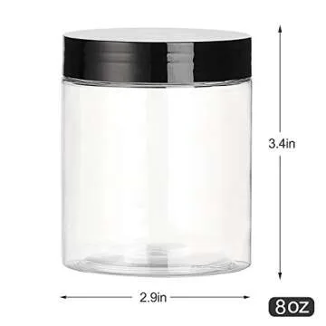 Show moreDiscover the ultimate storage solution with the Dabacc 8 OZ Plastic Jars with Lids. This versatile 24-pack of clear plastic jars is perfect for organizing everything from kitchen staples to DIY projects. Each jar features an airtight seal that ensures your contents remain fresh and secure, while the size—standing at an ideal height of 3.31 inches without the lid—makes them easy to stack and store, optimizing your space efficiently. With a mouth diameter of 2.68 inches, these jars offer a roomy opening for easy access, whether you’re retrieving snacks, storing ingredients, or organizing craft supplies.