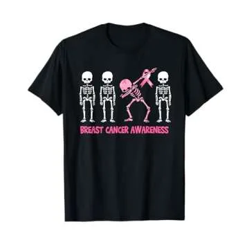 Dabbing Skeleton Pink Ribbon Breast Cancer Halloween T-Shirt