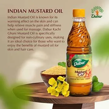 Show more Discover the transformative benefits of Dabur Kachi Ghani Indian Mustard Oil, a versatile and organic solution for hair and skin care. This exceptional oil, derived from non-GMO mustard seeds, showcases the rich heritage of natural beauty care in South Asia. Embrace the power of mustard oil—a cherished staple in households for generations, perfect for nourishing hair, soothing massages, and enhancing skin elasticity.