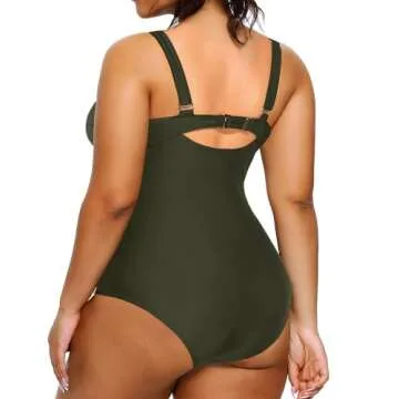 Daci Olive Green Plus Size One Piece Swimsuit for Women with Tummy Control and Lace Up
