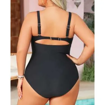 Daci Plus Size Swimsuit for Women One Piece Cutout Tummy Control Bathing Suits V Neck Monokini Black Large