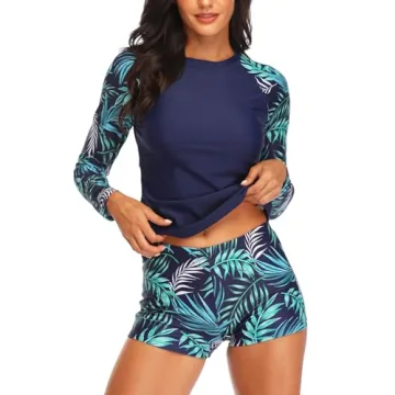 Show moreIntroducing the Daci Women Two Piece Rash Guard Long Sleeve Swimsuit, a stunning combination of style, comfort, and sun protection that elevates your swimwear game. This swimsuit showcases an eye-catching design adorned with vibrant blue leaves that ensures you stand out whether lounging by the pool or enjoying a tropical beach day. The thoughtful addition of a long sleeve rash guard not only adds sophistication but also maximizes your sun safety, making it the ideal companion for a variety of water activities. With a chic matching boyshort bottom, this swimsuit offers a fashionable look and excellent coverage, so you can enjoy every moment with confidence.