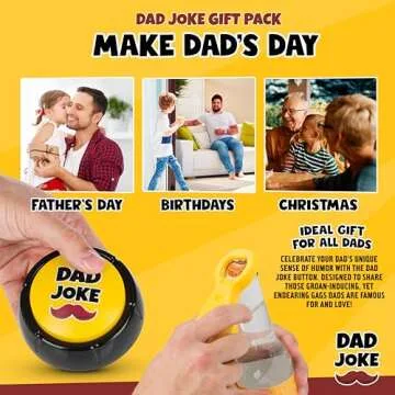 Show moreIntroducing the Ultimate Dad Joke Gift Pack – your ticket to a world filled with laughter and groans! This delightful combo features not just any ordinary gifts, but a Dad Joke Button and a Talking Bottle Opener designed to elevate every gathering into a pun-filled extravaganza. With just a push of the button, you can unleash a library of classic dad jokes, guaranteed to provoke teary laughter and eye rolls alike at family dinners, parties, or simply whenever you need a quick giggle.