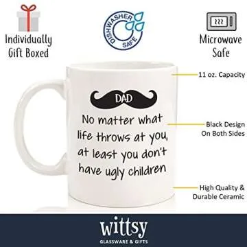 Dad No Matter What, Ugly Children Funny Coffee Mug - Gag Gifts for Dad, Men - Unique Dad Gifts from Daughter, Son, Kids, Wife - Cool Birthday Present Ideas for Guys, Him - Fun Novelty Dad Mug, Cup