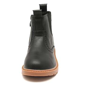 Designed for ultimate convenience, these boots boast an easy on and off feature thanks to the side zipper closure paired with an elastic shoe throat. This ensures a perfect fit while allowing kids to wear their boots independently, fostering their self-reliance. Say goodbye to the hassle of tying shoelaces and hello to stylish practicality!