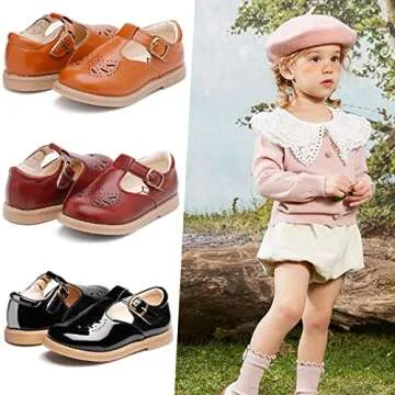 Show moreIntroducing the DADAWEN Girl's Classic Mary Jane Flats, the perfect blend of style and comfort tailored for your little girl. Crafted with a lightweight design, these school uniform shoes feature a Mary Jane upper that brings a classic touch to any outfit. Whether it’s for a birthday party, a special wedding, or daily school use, these shoes maintain a sophisticated look while ensuring utmost comfort for active toddlers. The shoes come in a beautiful brown shade, making them versatile and easy to pair with any wardrobe.