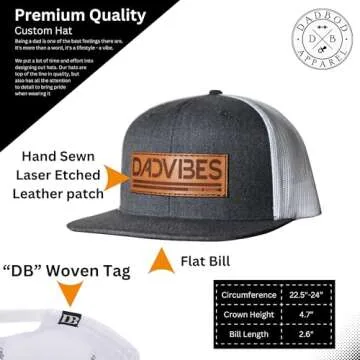 DadBod Apparel DB Dad Vibes Hat (Charcoal/White Mesh) Premium Leather Patch Flat Bill Dad Vibes Snapback hat for Men - Dad BOD DadVibes Mens Hats Baseball Cap for Girl Dads