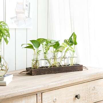 Dahey Plant Propagation Stations with Wooden Box - 5 Vases for Stylish Hydroponic Decor