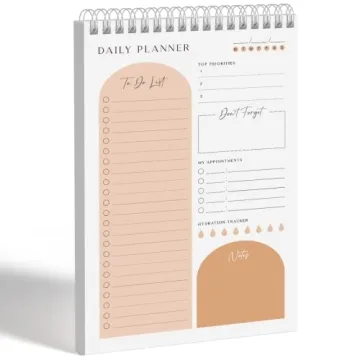 Daily Planner To Do List Notepad - 60 Undated Pages, Apricot, Twin-ring Spiral Binding for Daily Tasks