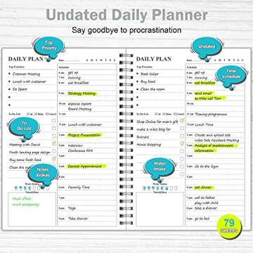 Daily Planner Undated, Asten To Do List Notebook Hourly Schedules Spiral Appointment Planner for Men and Women,PVC Hardcover,Elastic Closure, Inner Pocket 8.3" x 5.8" (Gray)