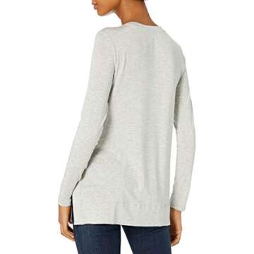 Daily Ritual Women's Soft Rayon Jersey Crew Neck Long-Sleeve Split-Hem Tunic, Light Grey Heather, X-Large