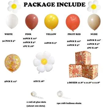 Daisy Groovy Party Balloons Decorations, Boho 60S 70S 139 pcs Set of Groovy Theme Retro Nude Pink Red Confetti Balloons Daisy Mylar Balloon, You Are Groovy Party Boxes for Birthday Party Supplies