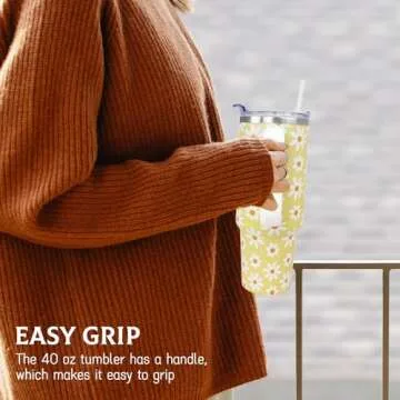 Daisy Tumbler 40 Oz, Daisy Gifts for Women, Flower Daisy Coffee Cup Travel Mug Water Bottle, Daisy Gift for Women, Daisy Accessories Stuff Thing, Floral 40 Oz Tumbler with Handle and Straw