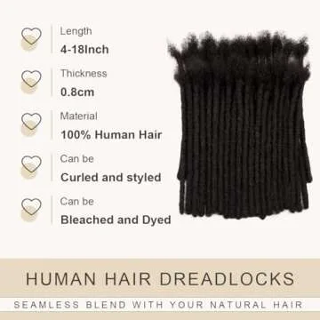DAIXI 8-10 Inch 30 Strands 100% Real Human Hair Dreadlock Extensions for Man/Women Full Head Handmade 0.8cm-1.2cm Thickness Can Be Dyed and Bleached Dreadlocks Bulk with Needle and Comb (1B Color)