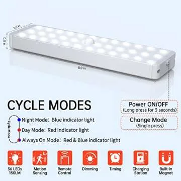 DAKOMM Closet Lights with Charging Station, 36-LEDs Cabinet Rechargeable Dimmable Timing, Motion Sensor Indoor Kitchen Cupboard for Stairs Hallway Bedroom Drawer (3pcs)