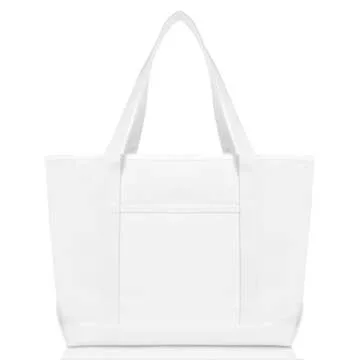 Show moreIntroducing the DALIX 23" Premium 24 oz. Cotton Canvas Shopping Tote Bag in a pristine white finish, designed for those who value both style and functionality. Crafted from luxury premium 100% cotton canvas, this tote offers exceptional durability and a sophisticated look, making it the perfect companion for shopping trips, beach outings, or everyday errands. Measuring a generous 23 inches in length, 14 inches in width, and 7 inches in depth, it provides ample space to carry all your essentials with ease. The robust zippered top closure ensures your items are secure, while the convenient 12-inch drop handles make it easy to carry whether you're on the go or lounging by the beach.