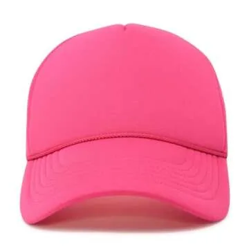 DALIX Plain Blank Trucker Hat Mesh Cap in Hot Pink
