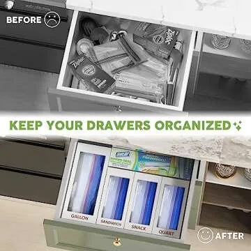 DALSHABET Bamboo Storage Bag Organizer for Kitchen Drawer, 4 Separate Food Storage Bag Organizer, 12x14 Baggie Organizer Dispenser for All Brands Gallon, Snack, Sandwich & Quart Slider Bags White