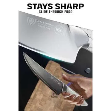 The handle showcases an innovative white resin encased in a durable aluminum mesh honeycomb, supplying a tension-free grip that feels natural and comfortable in your hand. The balance this knife offers allows you to perform a wide array of kitchen tasks with utmost precision – whether you're chopping veggies or slicing through tougher cuts of meat, the DALSTRONG Chef Knife will quickly become your go-to tool. And with each knife being NSF certified, you're assured of professional-grade quality and sanitation standards.