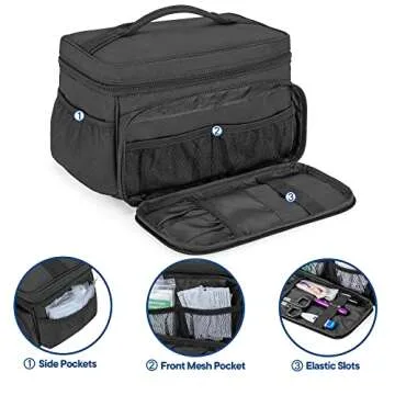 The bag features cleverly organized compartments, including a main compartment that houses three mesh pouches perfect for securely storing small medical items. Additionally, with a convenient top cover equipped with two mesh pockets and a magic tape closure, you can quickly access essentials when you need them most. The sturdy handle allows for easy carrying, while the two-way zipper ensures effortless access to all your supplies.