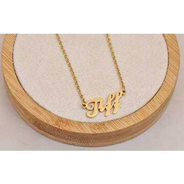 When compared to other nameplate necklaces on the market, the Dancing Wolf Tiff Name Necklace excels in both quality and style. Many competitors offer similar items made from lower-grade materials that tarnish quickly or cause skin reactions. In contrast, our necklace boasts a high-quality stainless steel foundation with a luxurious gold plating, ensuring longevity and comfort. Additionally, its customizable feature sets it apart, allowing for a personal touch that you won't find in many generic offerings.