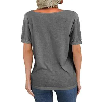 Danedvi Women Fashion Deep V-Neck Short Sleeve Tops - Chic Casual Gray T-Shirt