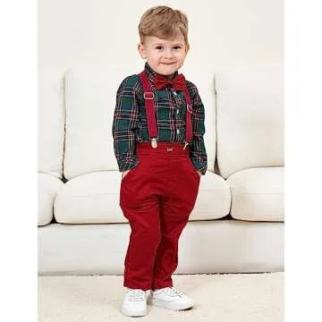 DANGKAEN Baby Boy Clothes Toddler Suits, Outfits Gentleman Dress Shirt +Bowtie + Suspender Pants Outfit Set Wedding Burgundy 4-5T