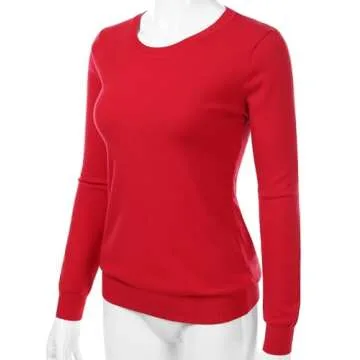danibe Women's Crewneck Long Sleeve Pullover Premium Soft Knit Sweater RED S
