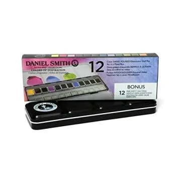 Daniel Smith 285650103 Extra Fine Inspirational Solid Watercolor Paint Set of 12 Half Pans, Metal Case and 12 Empty Containers