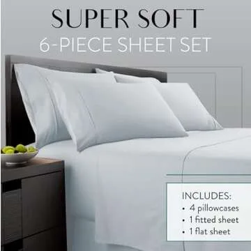 Danjor Linens Queen Sheet Set - 6 Piece Set Including 4 Pillowcases - Deep Pockets - Breathable, Soft Bed Sheets - Wrinkle Free - Machine Washable - Ice Blue Sheets for Queen Size Bed - 6 pc