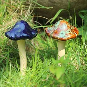 Danmu Garden Decor, 4pcs (Random Color) Ceramic Mushroom for Garden, Yard, Fairy Garden - Lawn Ornament Décor, Pottery Ornament 4.52" in Height