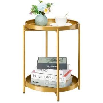 Show moreIntroducing the danpinera 2-Tier End Table, a stunning blend of modern design and practical functionality that transforms any space into a stylish oasis. This gold-colored side table is crafted from powder-coated metal, ensuring durability and a chic look that complements your decor beautifully. With its contemporary two-tier structure, you can easily remove the trays to create a versatile accessory that suits your needs, whether it’s for holding drinks or displaying decorative items. The thoughtful addition of curled edges enhances safety, minimizing spills and accidents, making it an ideal choice for homes with children and pets.
