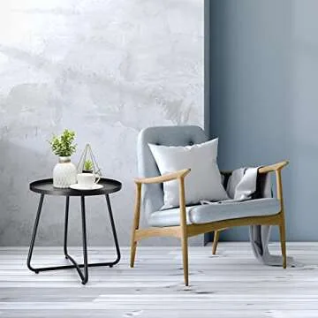 danpinera Outdoor Side Tables, Weather Resistant Steel, Small Round End Table for Patio Yard Balcony Garden Bedside Black