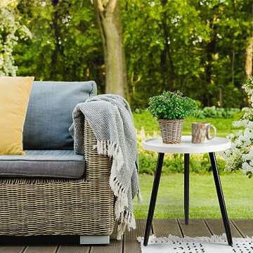 danpinera Round Side Table, Metal Legged Accent Table with Wooden Tray, Small Round End Table for Living Room, Bedroom, Nursery, White & Black