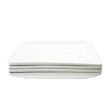 Danxia Porcelain Dinner Plates Square, 4 Piece, White (10 Inch)
