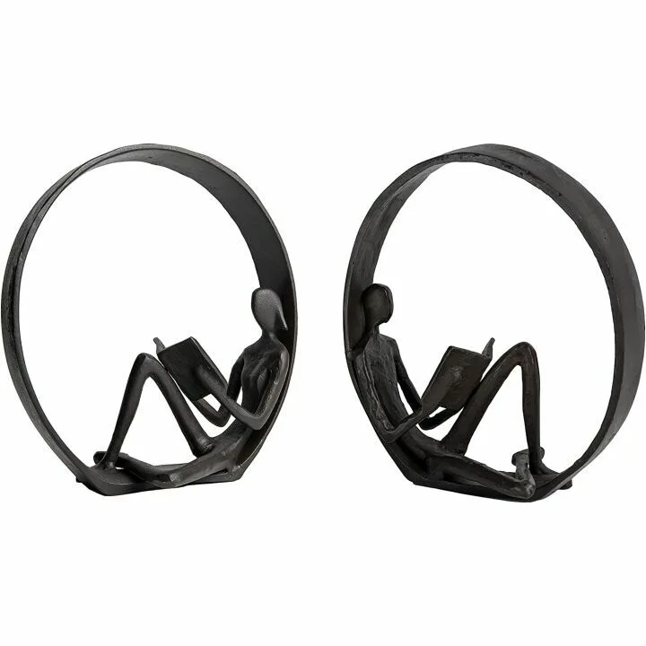 The key features of the Danya B. Encircled Reader Statues include their durable cast iron construction, smooth edges, and detailed design capturing the relaxed poses of the figures. Their dark matte brown finish complements a wide range of decor styles, making them both a functional and aesthetic addition to any room. These bookend statues are also carefully packaged to ensure they arrive in perfect condition.