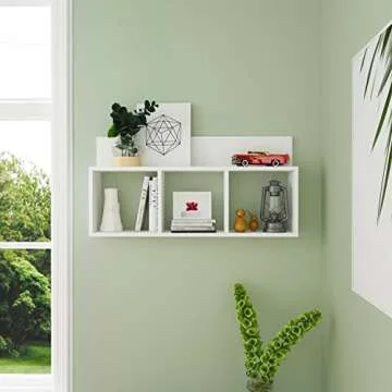 Show moreTransform your living space with the Danya B. Modern 3 Cube Floating Wall Shelf, a stylish and functional addition that elevates your home decor while maximizing wall space. Designed in a sleek white finish, this wall-mounted triple cubby shelf features three distinct cubes and a convenient display ledge, perfect for showcasing your favorite books, plants, or decorative items. Its modern aesthetic is seamlessly integrated with versatility, making it a suitable choice for any room, including living rooms, bedrooms, or home offices.