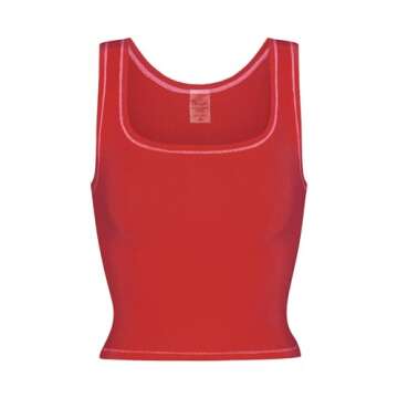 Danysu Women Cotton Rib Tank Top with Built-in Bra - Square Neck Crop Top in Red Apple