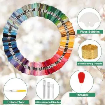 Daofary 200 Skeins Embroidery Floss, 200 Cross Friendship Bracelet String Stitch Thread Rainbow Color Friendship Bracelets Floss with Needles, Threader and Floss Bobbins