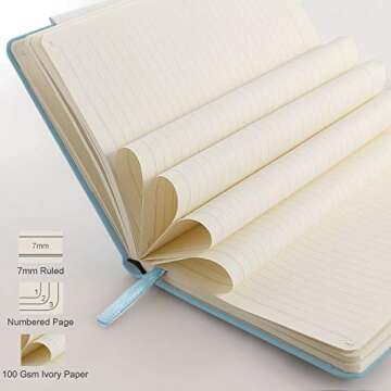 daolen College Lined Classic Notebook Journal [A5][ Leather Hardcover ][ 160 Numbered Pages ][ 100 gsm ] Premium Thick Paper with Inner Pocket 5.5"x 8.15" - (Pastel Blue, Ruled)