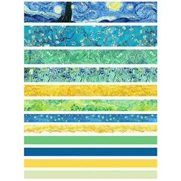 DAPUTOU Washi Tape Set of 12 Rolls,Van Gogh Starry Night Decorative Green Leaves Floral Blue Yellow Washi Masking Tape Sets for Craft,Kids,Scrapbook,DIY,Gift Wrapping(Yellow)