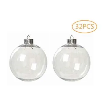 Show moreThe Clear Plastic Round Ball Ornaments are the ultimate creative canvas for your holiday spirit! Measuring at 80mm (3.15 inches), each of the 32 ornaments comes with a silver decorative ornament cap that allows for easy hanging. Made of high-quality, harmless materials, these ornaments are not only visually appealing but also safe, making them perfect for everyone to enjoy.