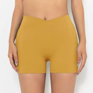 The V-shaped crossover waistband sets these shorts apart, providing a unique fashion statement while elegantly supporting your waist. This innovative design not only stretches to fit your body but also works to shape and define your curves. You can trust these shorts to stay in place during your workout, thanks to the high-waisted elastic band that minimizes slipping and curling. Available in eye-catching colors like yellow, they are sure to make you stand out.