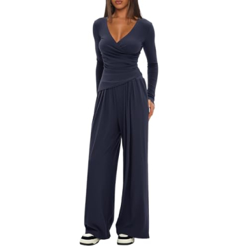 Show moreIntroducing the Darong Women's 2 Piece Lounge Outfit Set – a blend of comfort, style, and versatility that is perfect for the upcoming chilly seasons. This exquisite matching set is crafted from a soft, stretchy, and skin-friendly fabric, designed not just to make a fashion statement but to provide an exceptional wearing experience. The outfit features a stylish long sleeve wrap v-neck tee with an alluring irregular hem, paired with full-length pants that highlight a high-rise waist and wide leg design for a flattering silhouette.