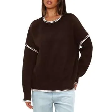Featuring a loose silhouette and ribbed knit fabrication with a classic crew neckline, this pullover is equipped with defined seaming and dropped shoulders for that effortlessly chic look. The contrast neckline and cuffs add a modern twist, making it a must-have statement piece for your autumn wardrobe. Its versatility shines through as it pairs beautifully with everything from jeans to skirts.