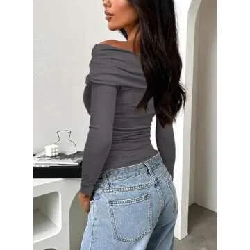 Show more Introducing the exquisite Y2K Off Shoulder Top, where modern fashion meets classic elegance! Crafted with a premium blend of 90% Rayon and 10% Spandex, this top promises a soft, stretchy, and breathable fit that feels incredible against your skin. Designed with both comfort and style in mind, it features a unique off-shoulder design that highlights your clavicle, enhancing your natural feminine charm. This womens long sleeve blouse is perfect for showcasing your beautiful neckline while keeping you fashion-forward.