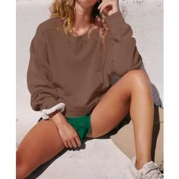 Darong Womens Cropped Crewneck Sweatshirts Crop Oversized Sweatshirts Athletic Long Sleeve Tops Workout Pullover 9077 Brown M