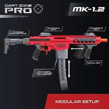 DART ZONE Pro-Series MK-1.2 Foam Dart Blaster - 200 FPS Foam Blaster for Adults & Teens - Soft Bullet Blaster for Ages 14+ with 30 Half Length Darts, 90° Shoulder Stock, Mags & Eyewear - 125 ft Range