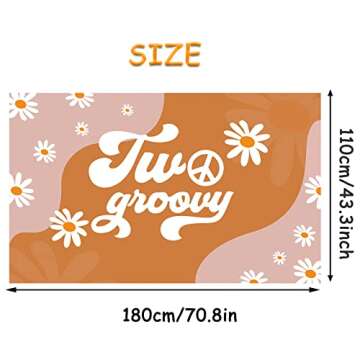 Elevate your celebrations with the vibrant DARUNAXY Two Groovy Retro Hippie Boho Banner, a delightful addition to any second birthday party! This beautifully designed backdrop features mesmerizing patterns of daisies, peace signs, and groovy fonts that create an enchanting visual atmosphere. Measuring an impressive 180 x 110 cm (70 x 43 inches), it offers ample space to enhance your decor while engaging everyone in the spirit of fun and joy, suited perfectly for your little...