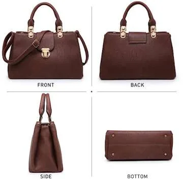 Dasein Women Satchel Handbags Top Handle Purse Medium Tote Bag Vegan Leather Shoulder Bag Coffee